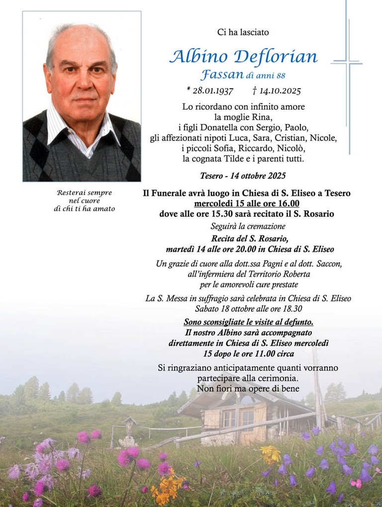 E' mancato Albino Deflorian "Fassan", 88 anni, di Tesero - Fiemme e Fassa - utilità, eventi, cinema, notizie
