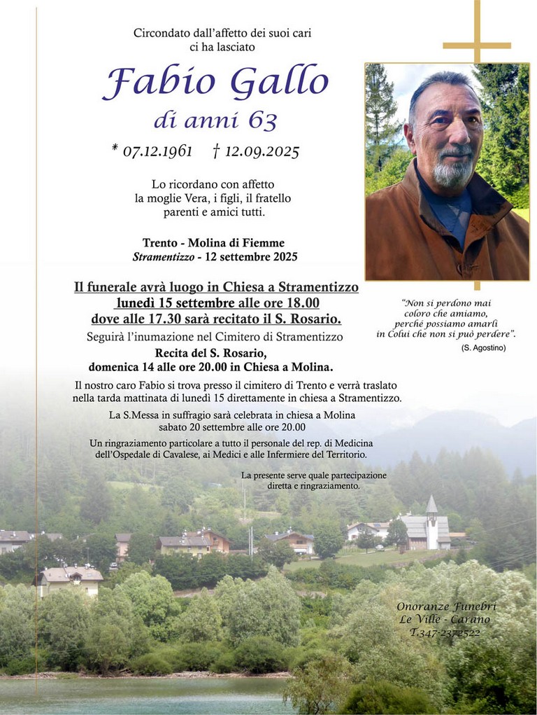 E' mancato Fabio Gallo, 63 anni, di Stramentizzo - Fiemme e Fassa - utilità, eventi, cinema, notizie
