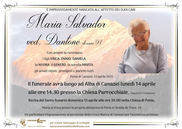 E' mancata Maria Zeni, 92 anni, di Tesero - Fiemme e Fassa - utilità, eventi, cinema, notizie
