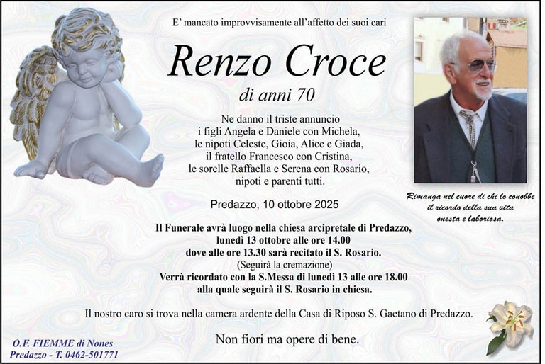 E' mancato Renzo Croce, 70 anni, di Predazzo - Fiemme e Fassa - utilità, eventi, cinema, notizie