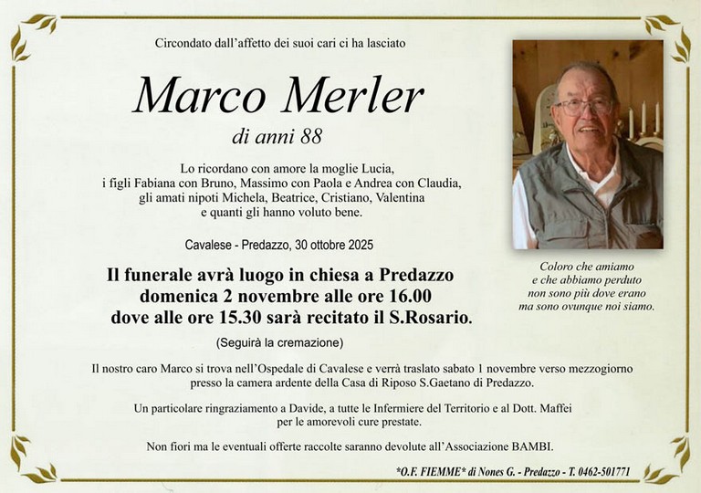 E' mancato Marco Merler, 88 anni, di Predazzo - Fiemme e Fassa - utilità, eventi, cinema, notizie