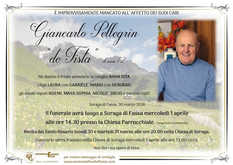 E' mancato Giancarlo Pellegrin "de Tista", 72 anni, di Soraga - Fiemme e Fassa - utilità, eventi, cinema, notizie