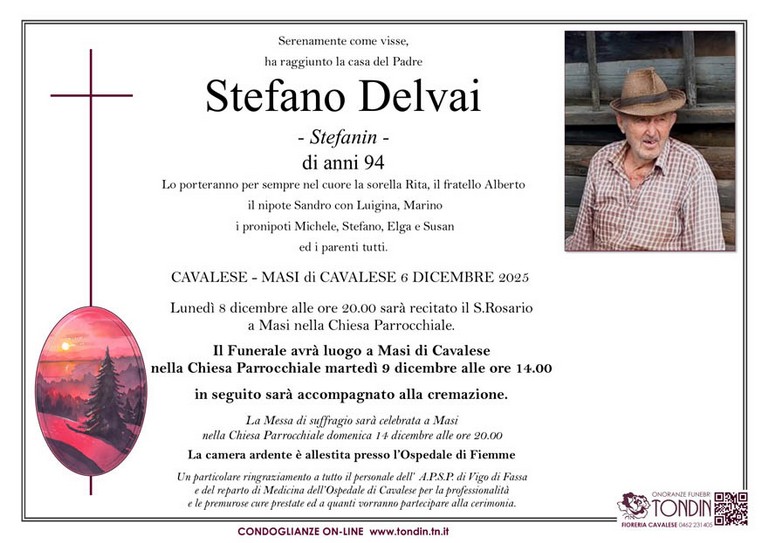 E' mancato Stefano Delvai "Stefanin", 94 anni, di Masi di Cavalese - Fiemme e Fassa - utilità, eventi, cinema, notizie
