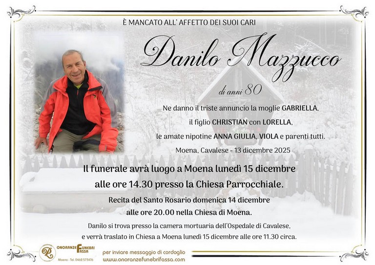 E' mancato Danilo Mazzucco, 80 anni, di Moena - Fiemme e Fassa - utilità, eventi, cinema, notizie