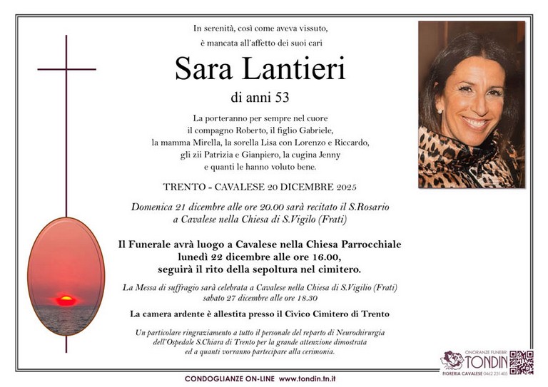 E' mancata Sara Lantieri, 53 anni, di Cavalese - Fiemme e Fassa - utilità, eventi, cinema, notizie