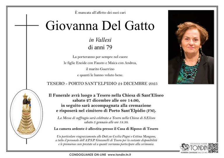 E' mancata Giovanna Del Gatto in Vallesi, 79 anni, di Tesero - Fiemme e Fassa - utilità, eventi, cinema, notizie