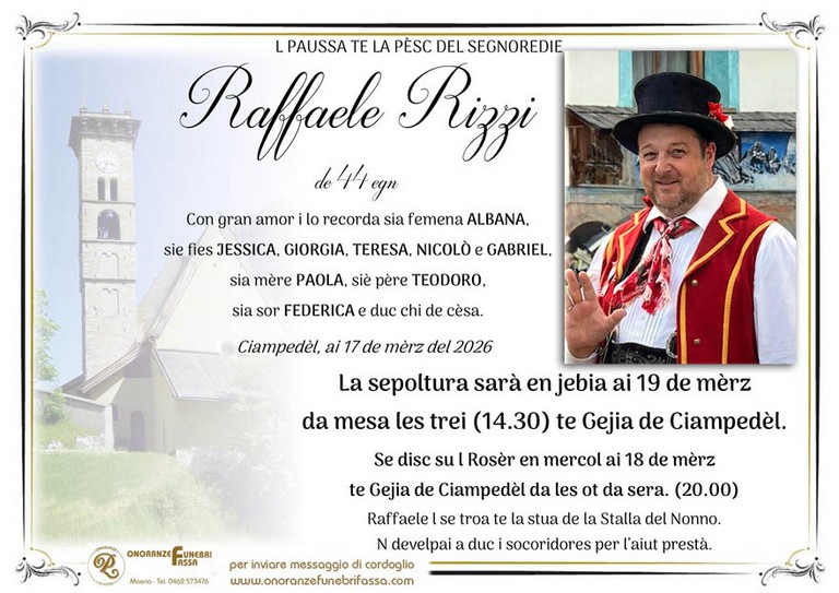 E' mancato Raffaele Rizzi, 44 anni, di Campitello - Fiemme e Fassa - utilità, eventi, cinema, notizie