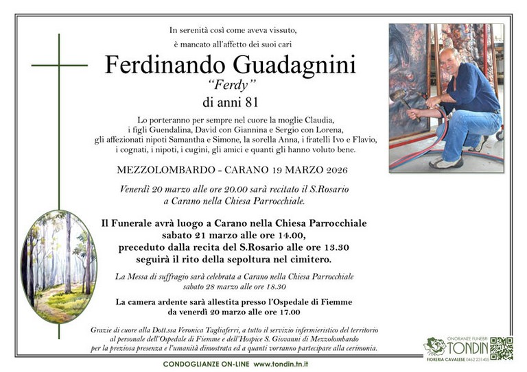 E' mancato Ferdinando Guadagnini "Ferdy", 81 anni, di Ville di Fiemme - Carano - Fiemme e Fassa - utilità, eventi, cinema, notizie