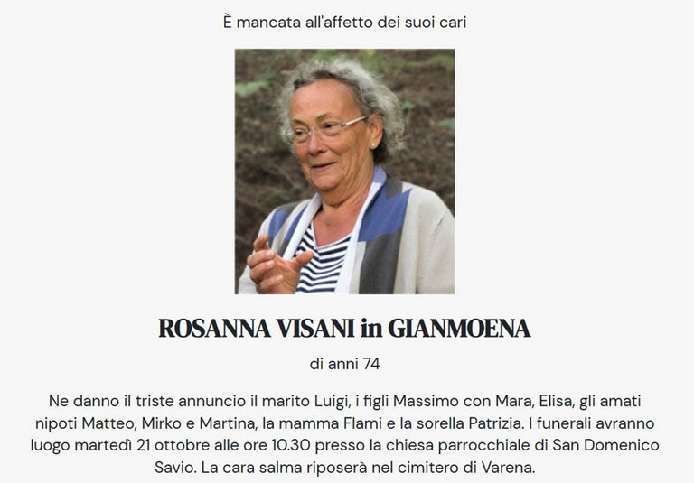E' mancata Rosanna Visani in Gianmoena, 74 anni, di Ville di Fiemme - Varena - Fiemme e Fassa - utilità, eventi, cinema, notizie