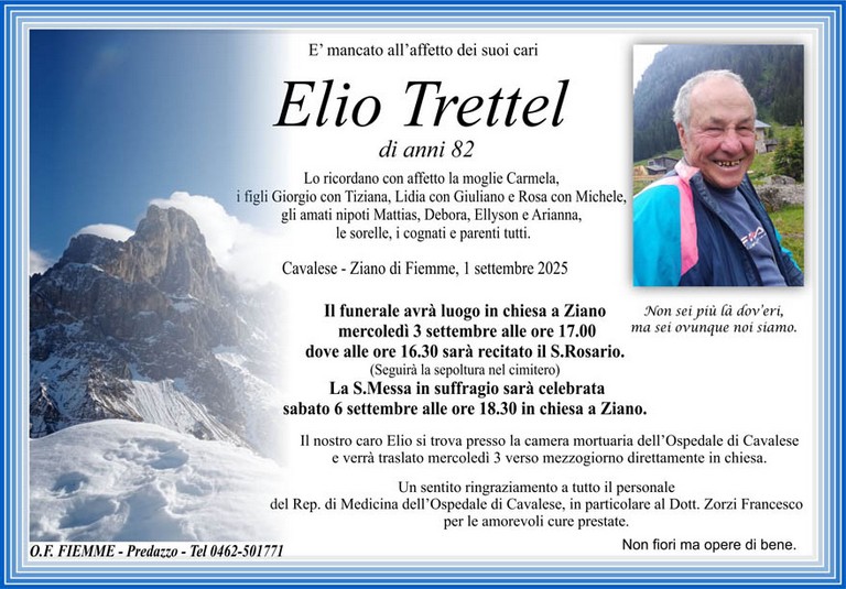 E' mancato Elio Trettel, 82 anni, di Ziano di Fiemme - Fiemme e Fassa - utilità, eventi, cinema, notizie