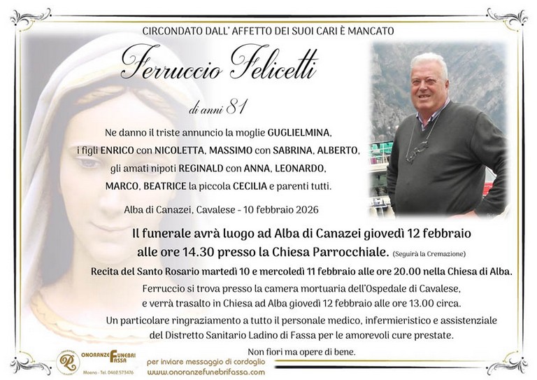 E' mancato Ferruccio Felicetti, 81 anni, di Alba di Canazei - Fiemme e Fassa - utilità, eventi, cinema, notizie