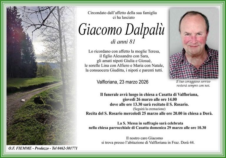 E' mancato Giacomo Dalpalù, 81 anni, di Valfloriana - Fiemme e Fassa - utilità, eventi, cinema, notizie