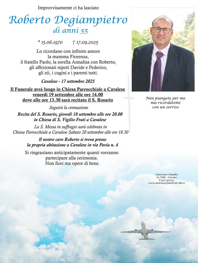 E' mancato Roberto Degiampietro, 55 anni, di Cavalese - Fiemme e Fassa - utilità, eventi, cinema, notizie