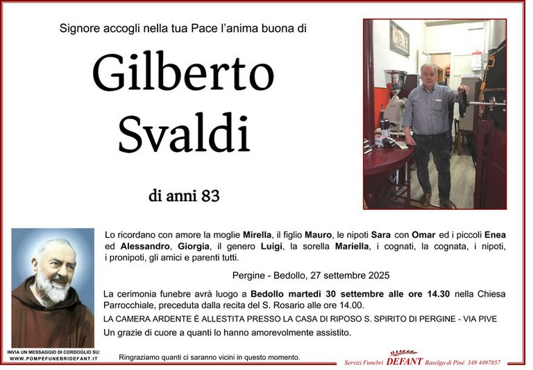 E' mancato Gilberto Svaldi, 83 anni, di Bedollo -Predazzo - Fiemme e Fassa - utilità, eventi, cinema, notizie