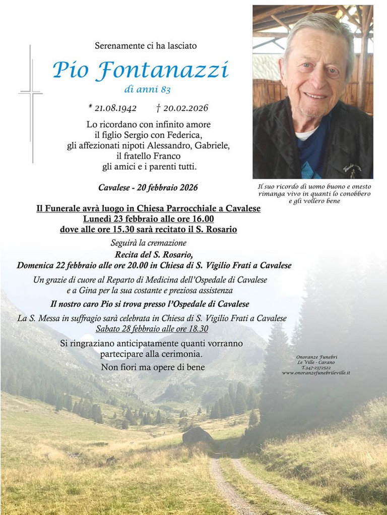 E' mancato Pio Fontanazzi, 83 anni, di Cavalese - Fiemme e Fassa - utilità, eventi, cinema, notizie
