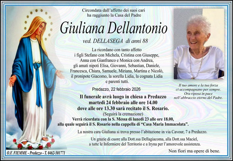 E' mancata Giuliana Dellantonio vedova Dellasega, 88 anni, di Predazzo - Fiemme e Fassa - utilità, eventi, cinema, notizie