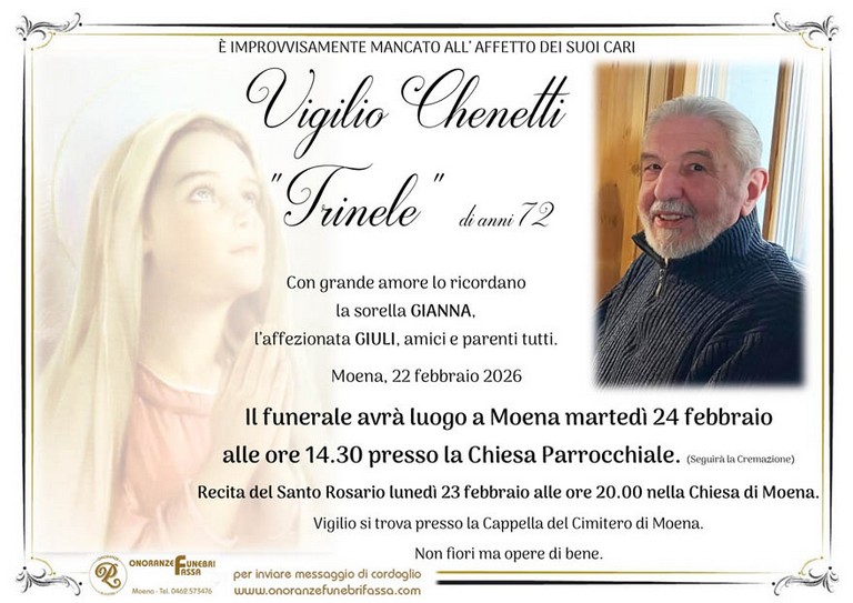E' mancato Vigilio Chenetti (Trinele), 72 anni, di Moena - Fiemme e Fassa - utilità, eventi, cinema, notizie