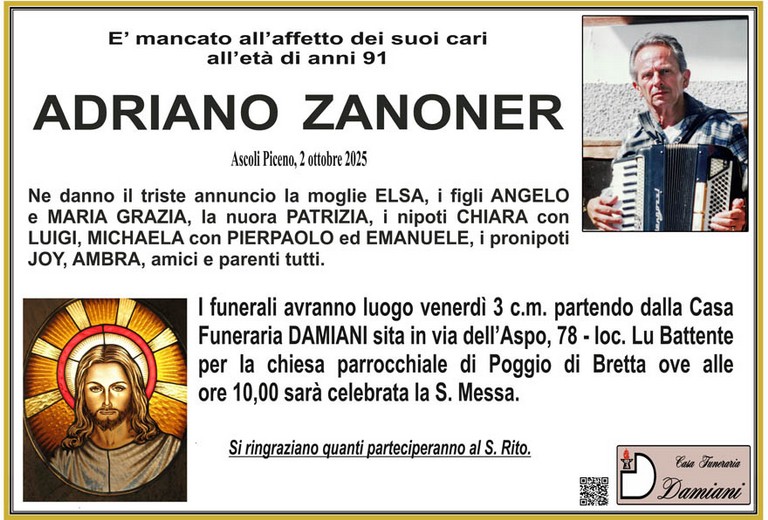 E' mancato Adriano Zanoner, 91 anni, di Moena - Ascoli Piceno - Fiemme e Fassa - utilità, eventi, cinema, notizie