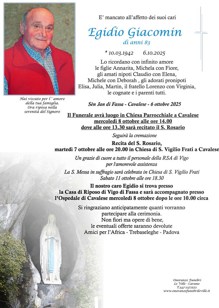 E' mancato Egidio Giacomin, 83 anni, di Cavalese - Fiemme e Fassa - utilità, eventi, cinema, notizie