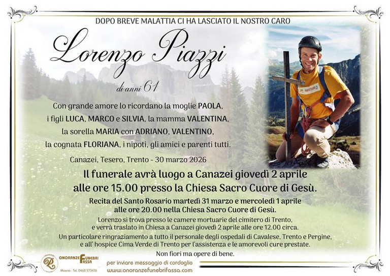 E' mancato Lorenzo Piazzi, 61 anni, di Canazei - Fiemme e Fassa - utilità, eventi, cinema, notizie