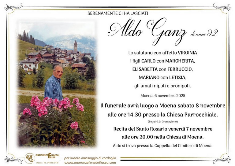 E' mancato Aldo Ganz, 92 anni, di Moena - Fiemme e Fassa - utilità, eventi, cinema, notizie