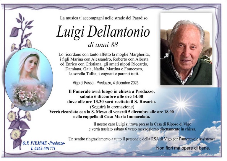E' mancato Luigi Dellantonio, 88 anni, di Predazzo - Fiemme e Fassa - utilità, eventi, cinema, notizie