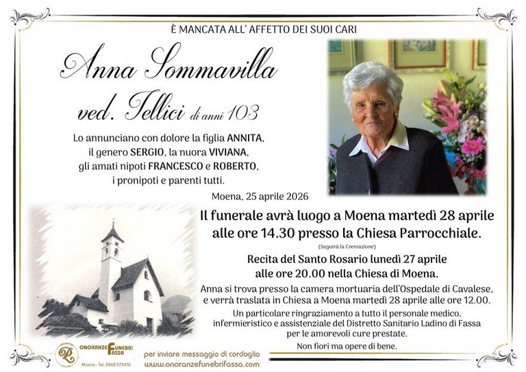 E' mancata Anna Sommavilla vedova Iellici, 103 anni, di Moena - Fiemme e Fassa - utilità, eventi, cinema, notizie