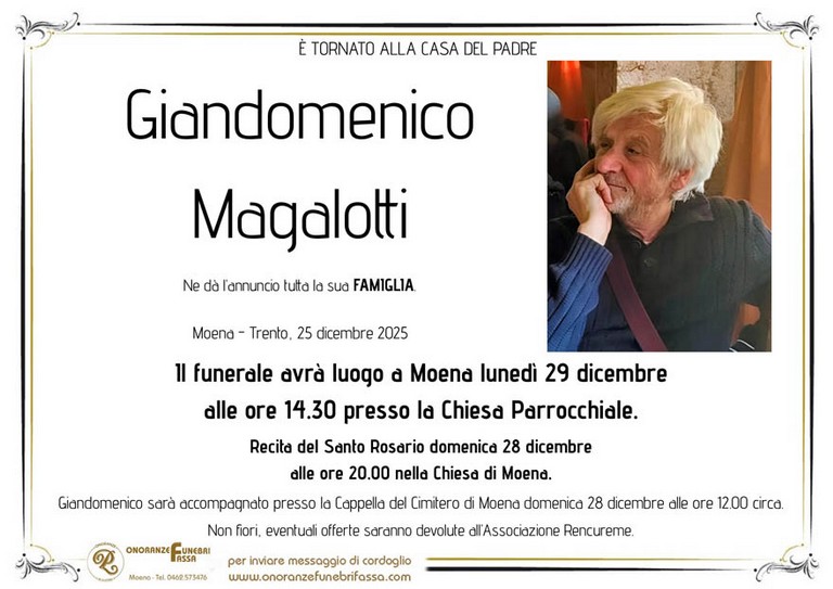 E' mancato Giandomenico Magalotti di Moena - Fiemme e Fassa - utilità, eventi, cinema, notizie