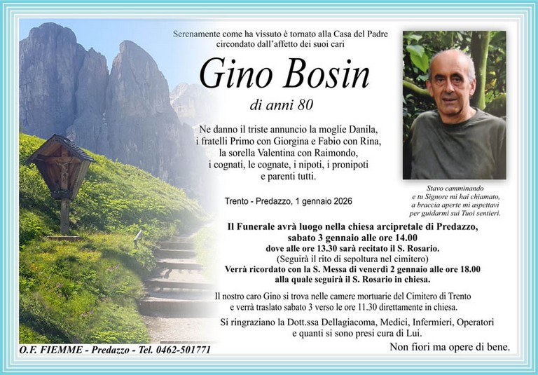 E' mancato Gino Bosin, 80 anni, di Predazzo - Fiemme e Fassa - utilità, eventi, cinema, notizie