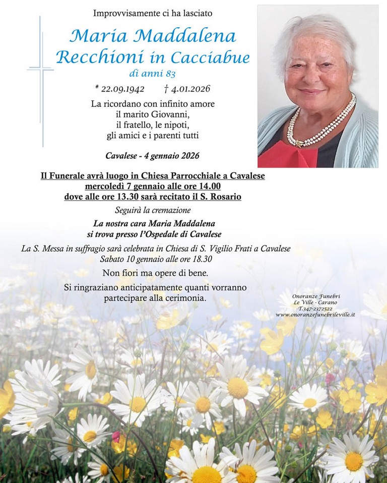 E' mancata Maria Maddalena Recchioni in Cacciabue, 83 anni, di Cavalese - Fiemme e Fassa - utilità, eventi, cinema, notizie
