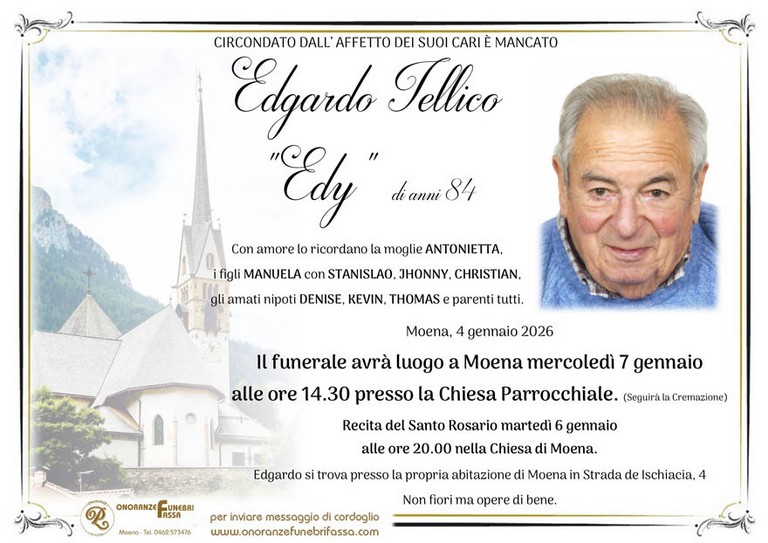 E' mancato Edgardo Iellico "Edy", 84 anni, di Moena - Fiemme e Fassa - utilità, eventi, cinema, notizie
