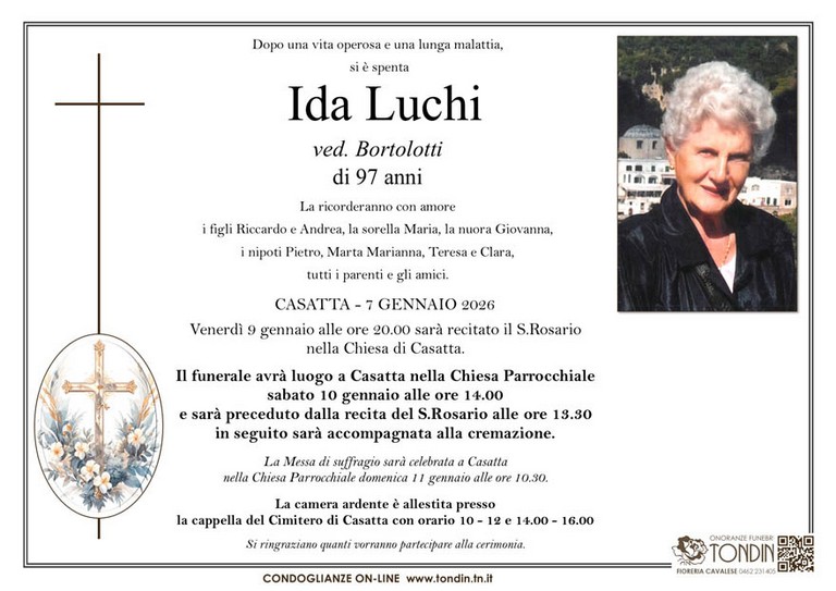 E' mancata Ida Luchi vedova Bortolotti, 97 anni, di Casatta di Valfloriana - Fiemme e Fassa - utilità, eventi, cinema, notizie