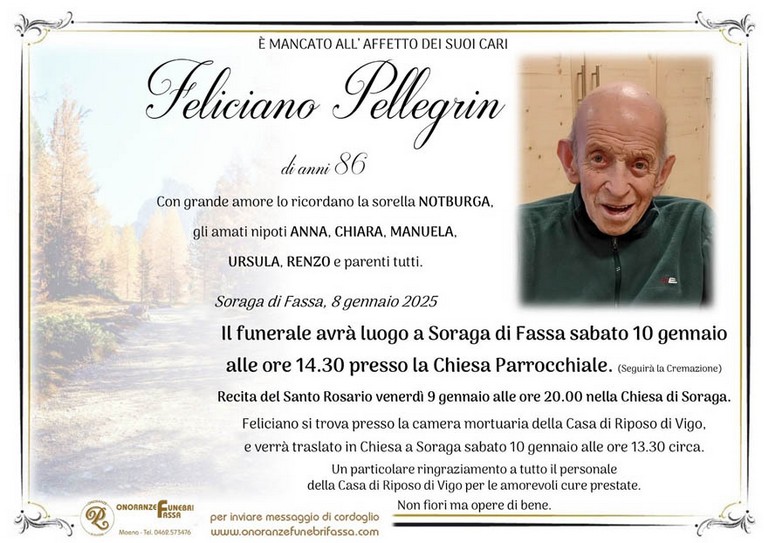 E' mancato Feliciano Pellegrin, 86 anni, di Soraga - Fiemme e Fassa - utilità, eventi, cinema, notizie