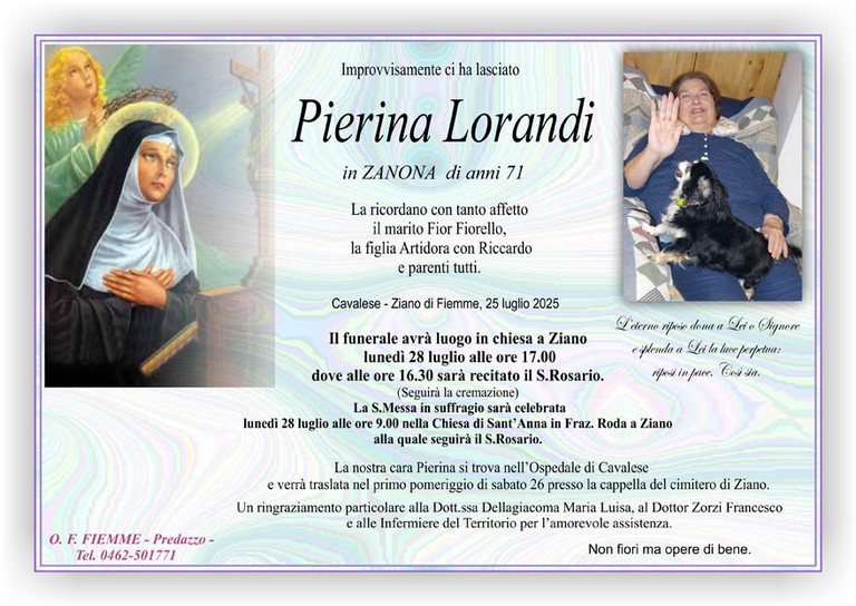 E' mancata Pierina Lorandi in Zanona, 71 anni, di Ziano di Fiemme - Fiemme e Fassa - utilità, eventi, cinema, notizie