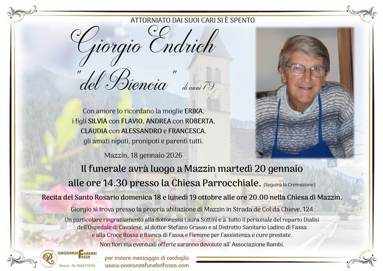 E' mancato Giorgio Endrich "del Biencia", 79 anni, di Mazzin - Fiemme e Fassa - utilità, eventi, cinema, notizie