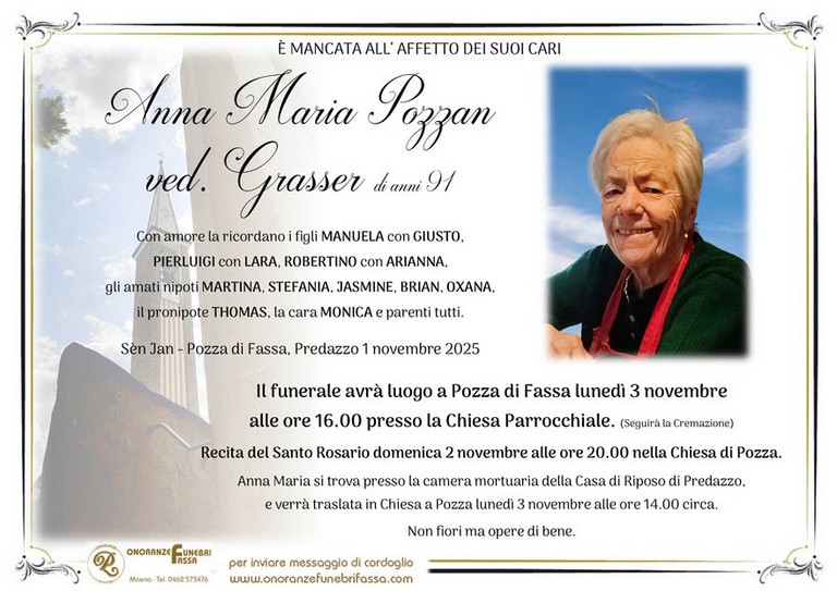 E' mancata Anna Maria Pozzan vedova Grasser, 91 anni, di Sèn Jan - Pozza di Fassa - Fiemme e Fassa - utilità, eventi, cinema, notizie