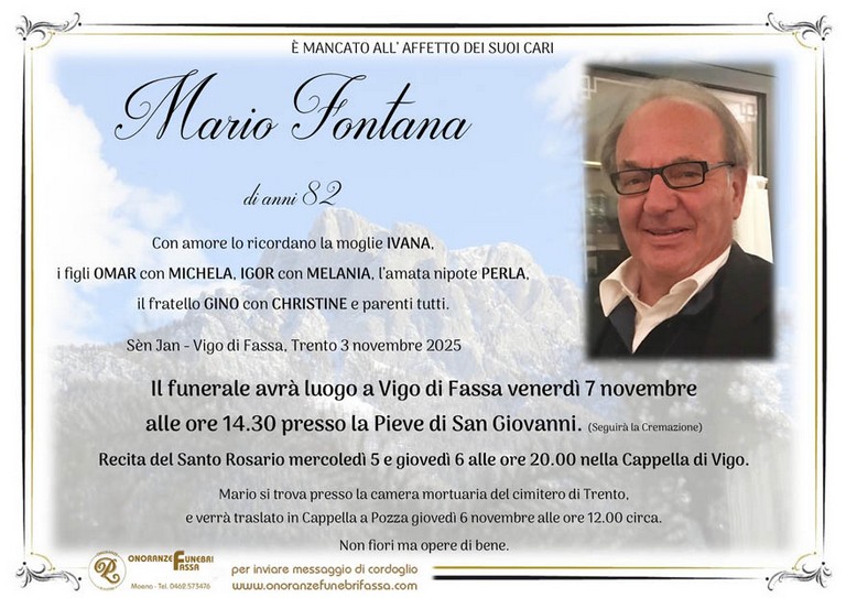 E' mancato Mario Fontana, 82 anni, di Sèn Jan - Vigo di Fassa - Fiemme e Fassa - utilità, eventi, cinema, notizie